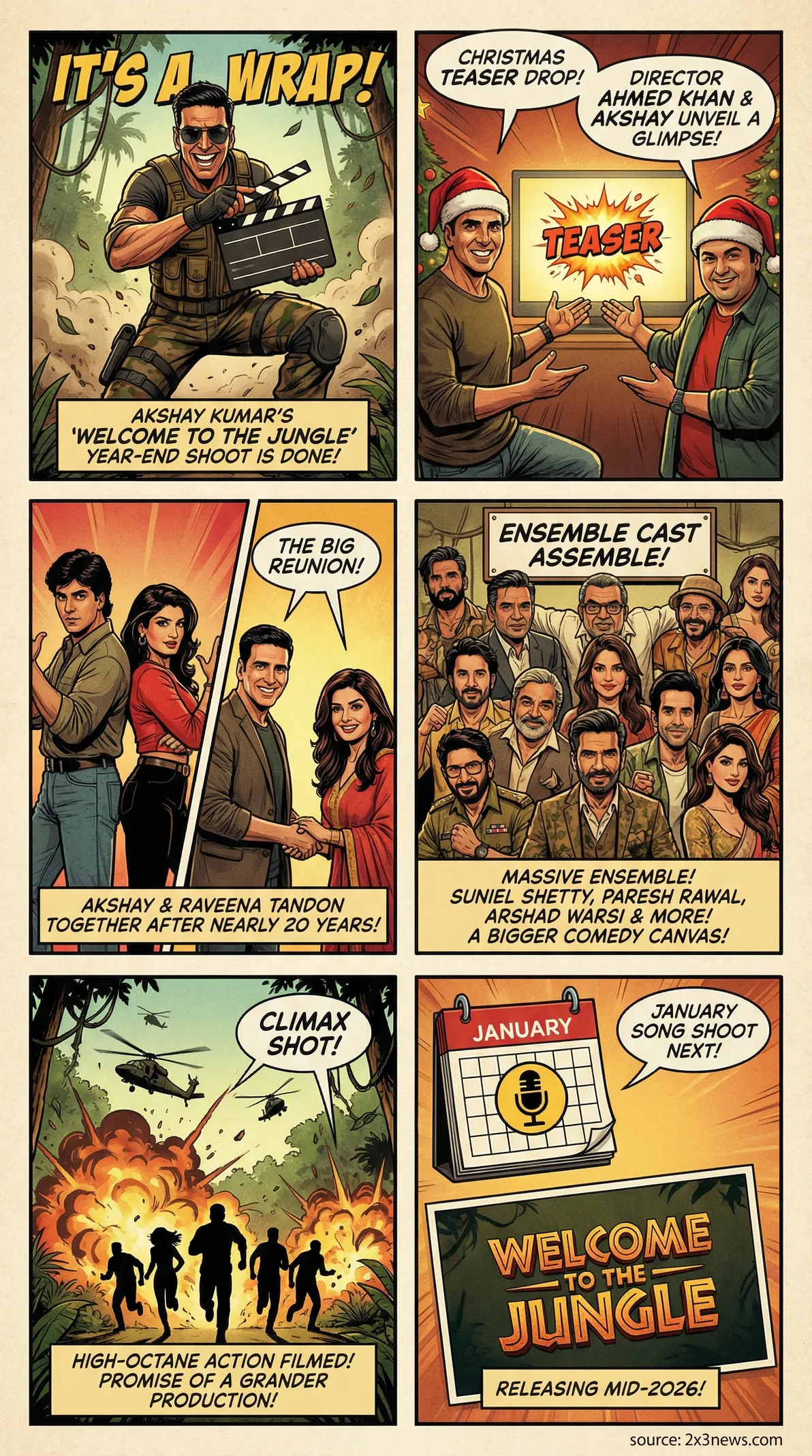 Akshay Kumar and the star-studded cast of 'Welcome to the Jungle' wrap filming and unveil a teaser, featuring his reunion with Raveena Tandon for a mid-2026 release.