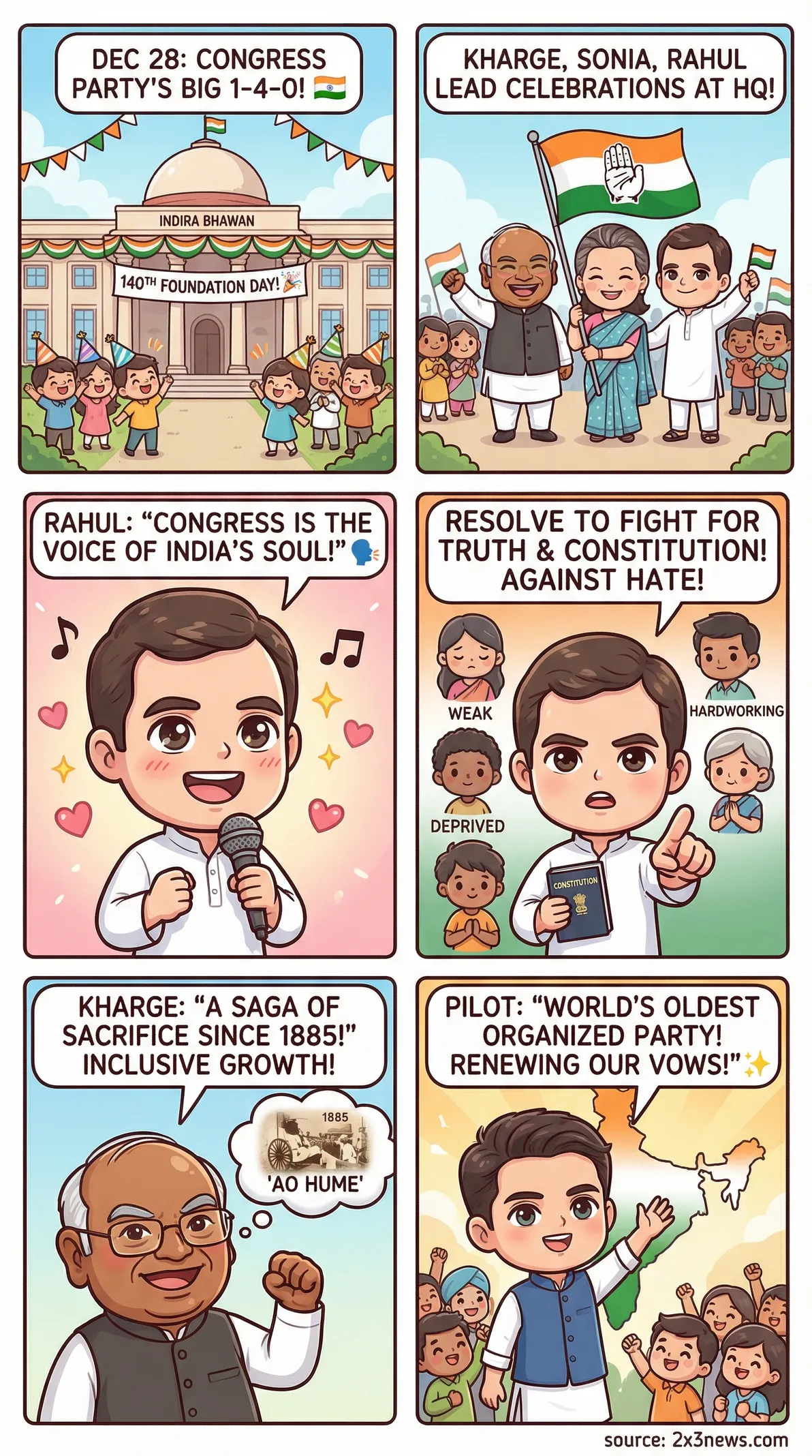 On its 140th Foundation Day, the Indian National Congress celebrated with top leaders. Rahul Gandhi declared the party represents 'India's soul,' vowing to protect the Constitution.