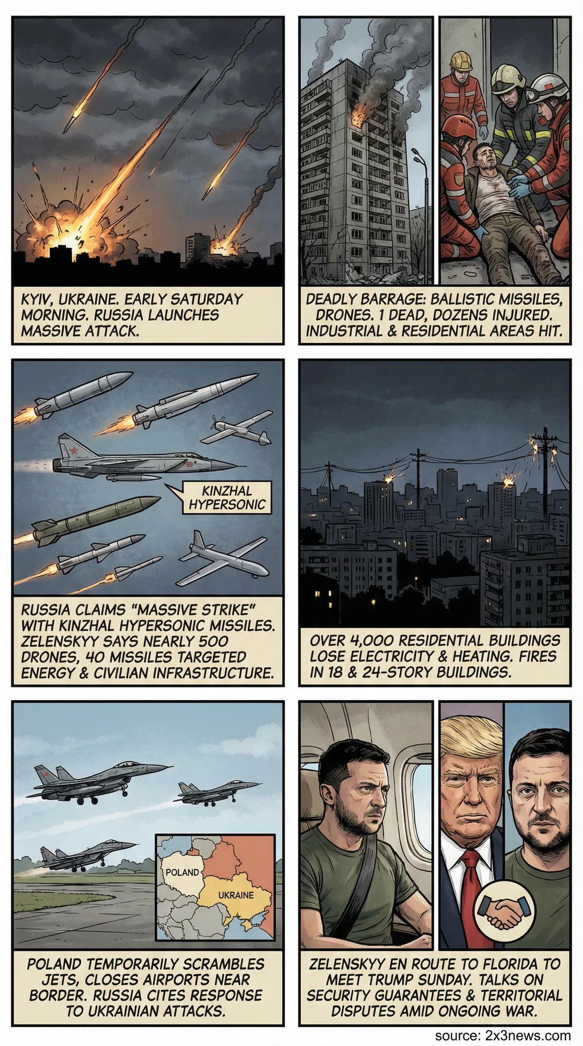 Russia attacks Kyiv with missiles and drones, killing 1 and wounding many ahead of Ukraine-US talks↗Russia attacks Kyiv with missiles and drones, killing 1 and wounding many ahead of Ukraine-US talks↗Russian strikes kill 1, wound dozens in Ukraine ahead of Trump-Zelenskyy meeting↗Russian strikes kill 1, wound dozens in Ukraine ahead of Trump-Zelenskyy meeting↗One dead, scores injured after Russia launches massive attack on Kyiv↗