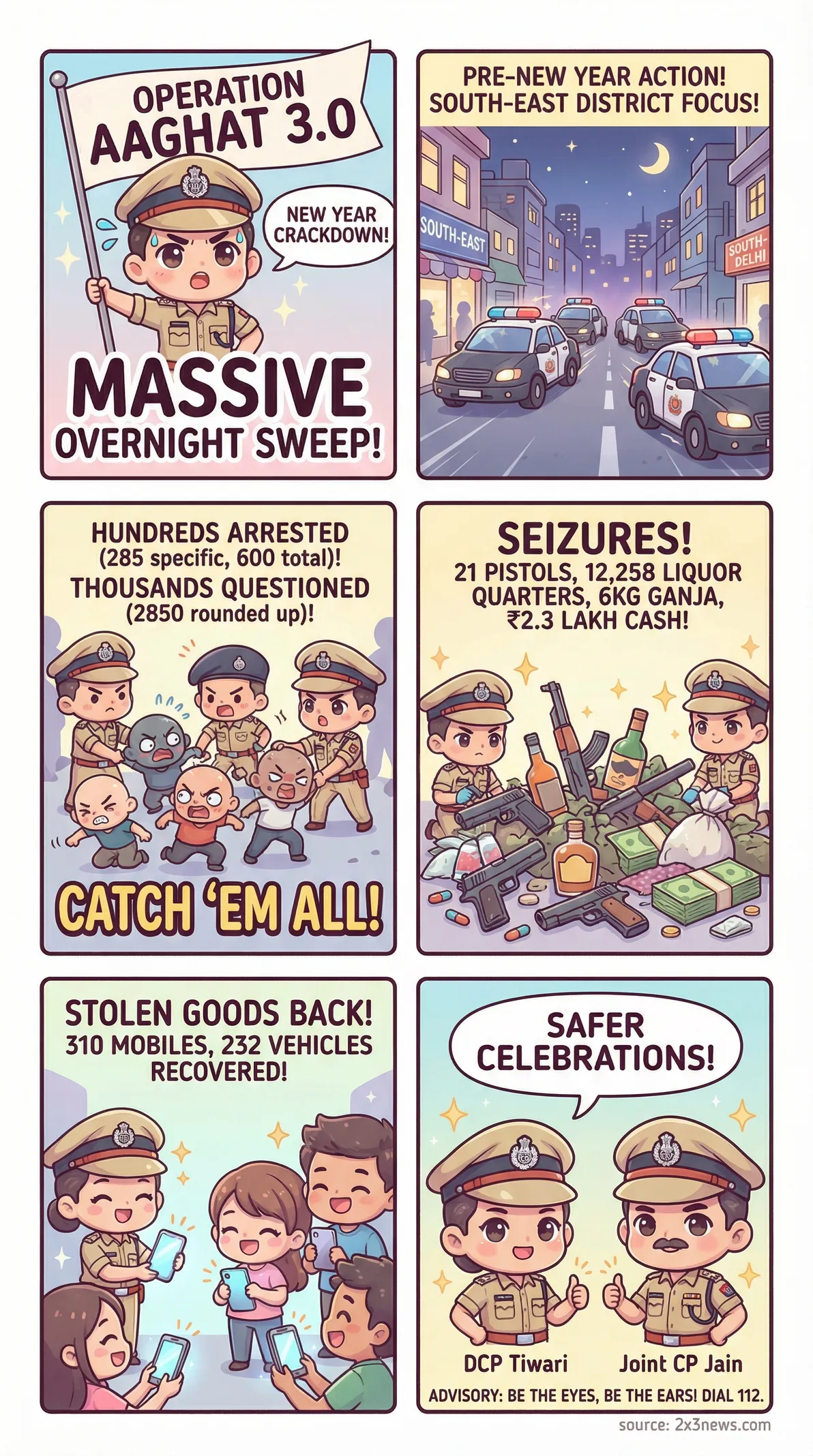 - •Delhi Police launched "Operation Aaghat 3.0" as a massive pre-New Year crackdown.