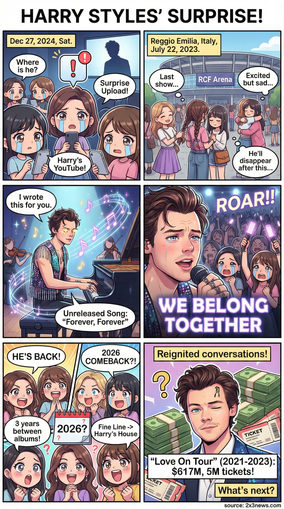 Harry Styles ended his music hiatus with a surprise YouTube video featuring an unreleased piano ballad, sparking fan excitement and comeback speculation.