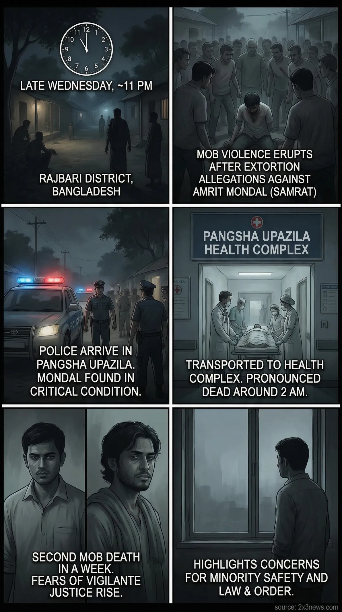 A Hindu man, Amrit Mondal, was beaten to death by a mob in Bangladesh's Rajbari district over extortion allegations, raising concerns about vigilante violence and minority safety.