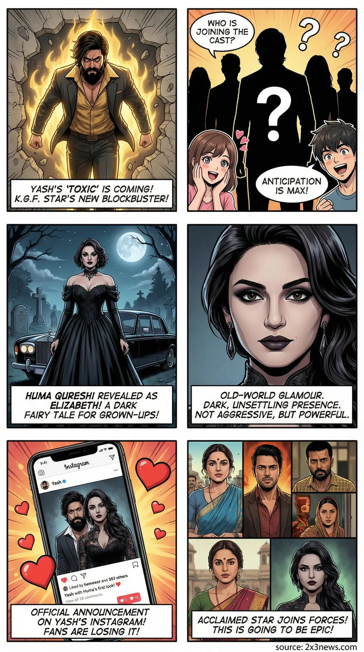 - •Huma Qureshi's first look as Elizabeth in Yash's film "Toxic: A Fairy Tale for Grown-Ups" has been unveiled.