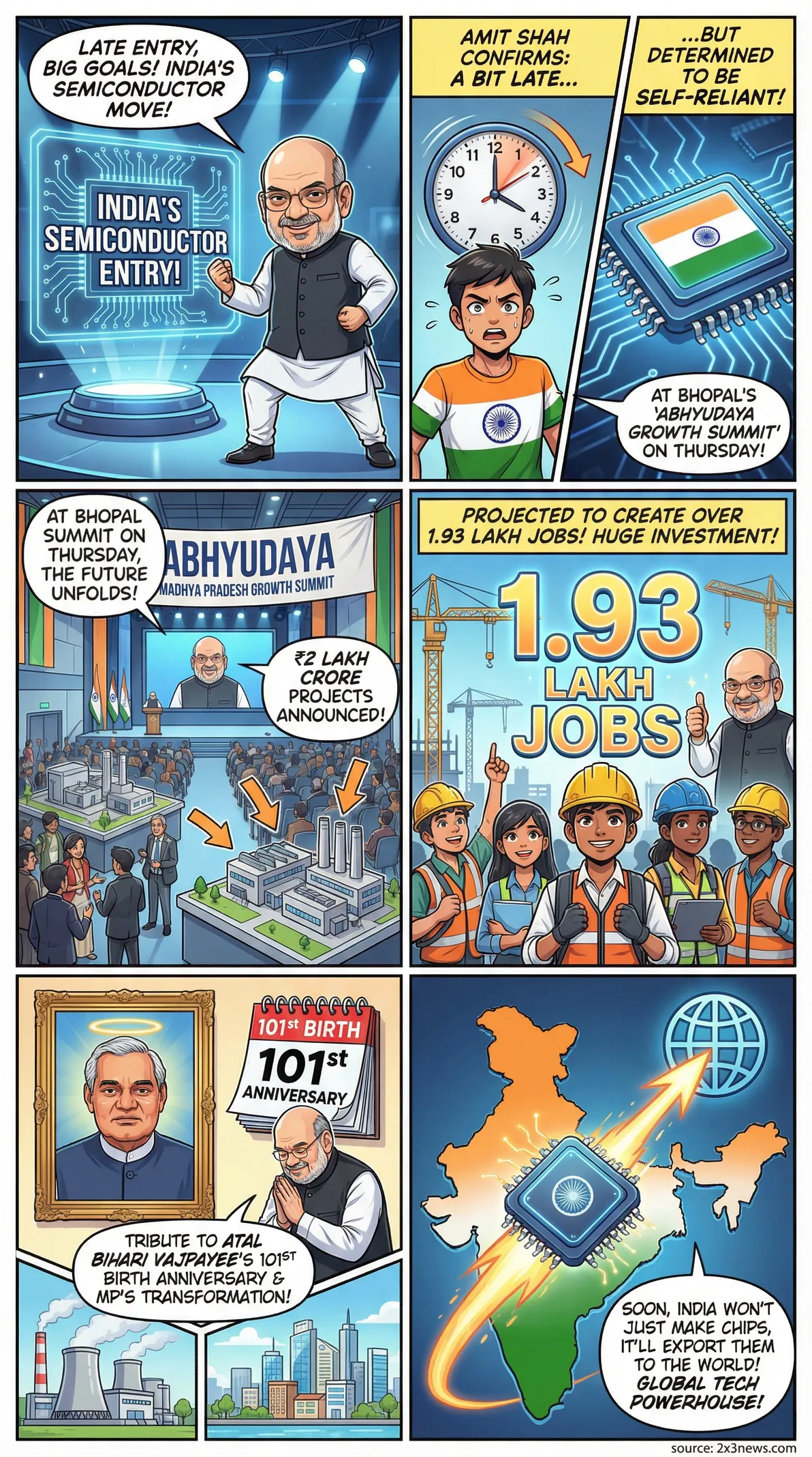 Union Home Minister Amit Shah announced India's push for semiconductor self-reliance and exports, alongside ₹2 lakh crore investment projects in Madhya Pradesh.
