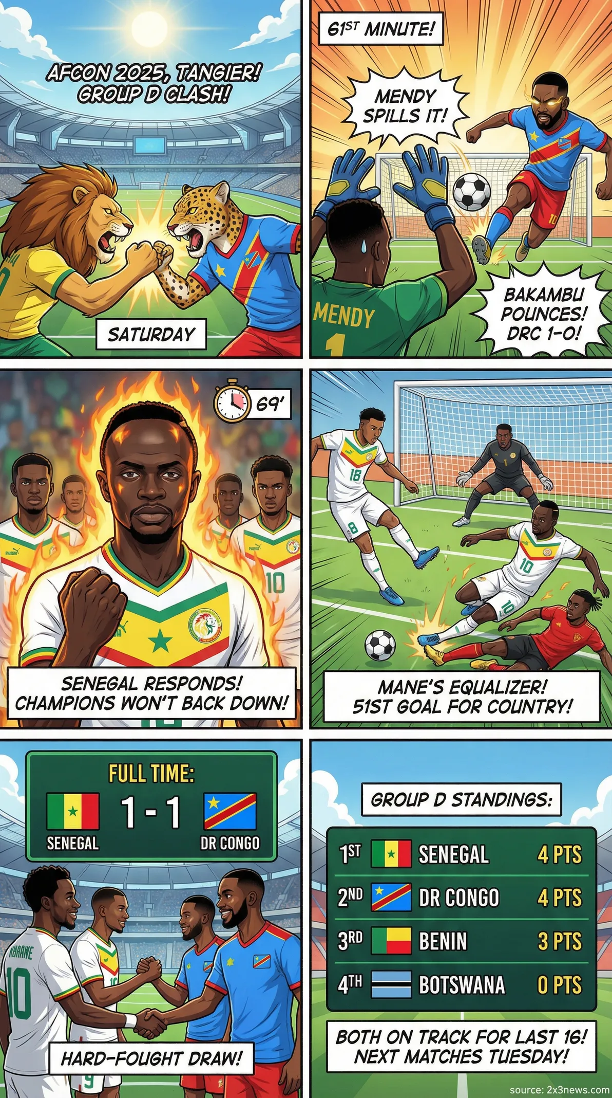 Sadio Mane scored to earn Senegal a 1-1 draw with DR Congo in the Afcon 2025 Group D match in Tangier, boosting both teams' last-16 hopes.
