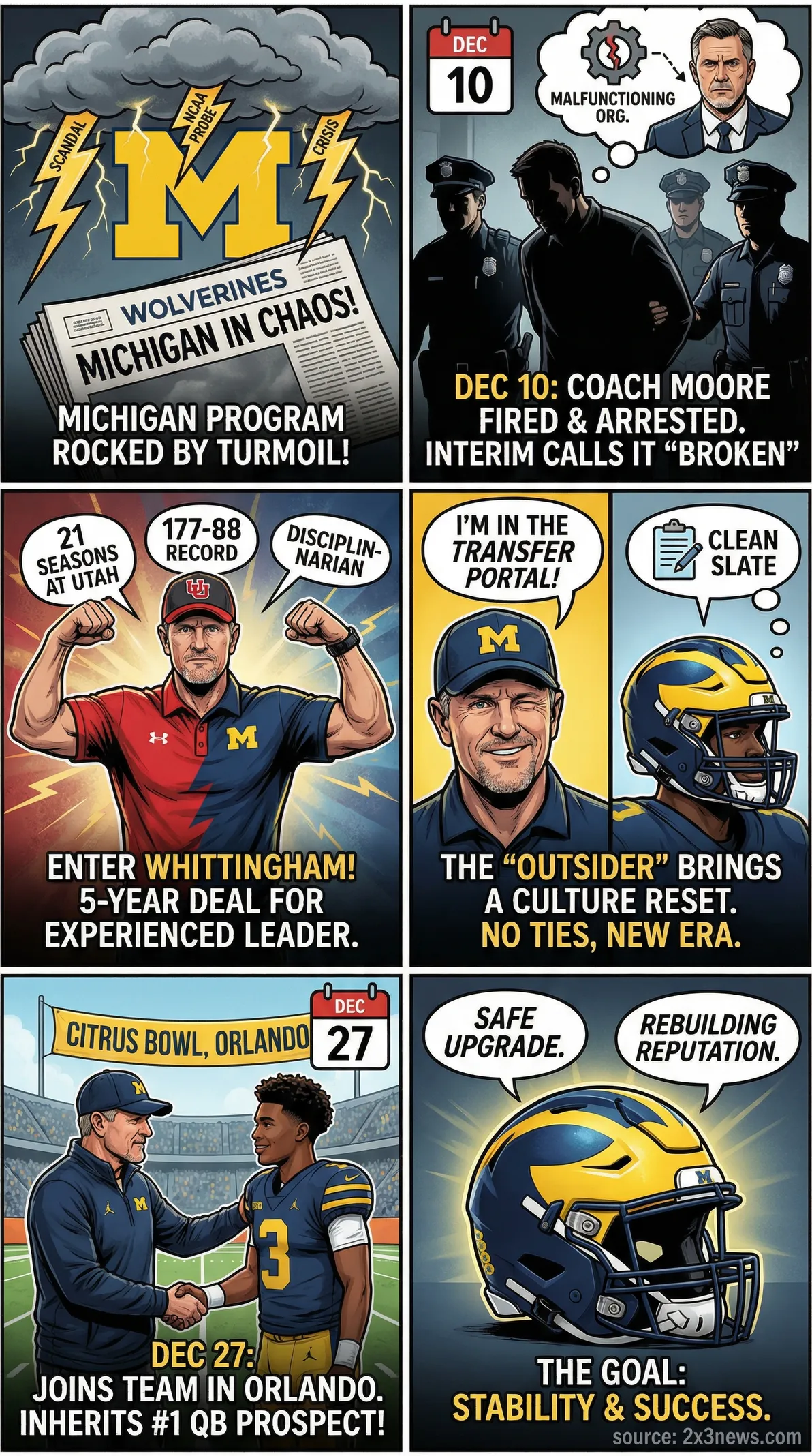 - •Whittingham, known for running a tough and disciplined program, is expected to provide stability and a "clean break" for Michigan.