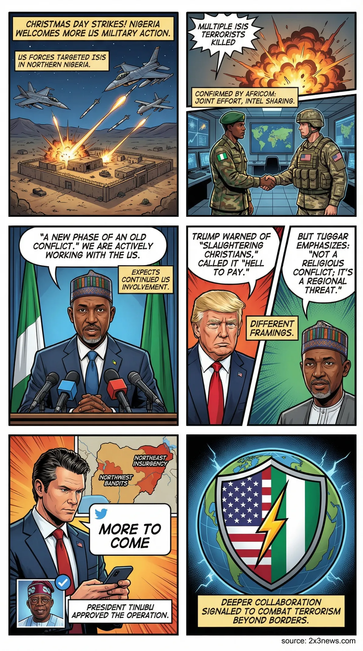 - •Nigerian Foreign Minister Yusuf Tuggar confirmed ongoing cooperation and intelligence sharing, stating it's a "new phase of an old conflict."