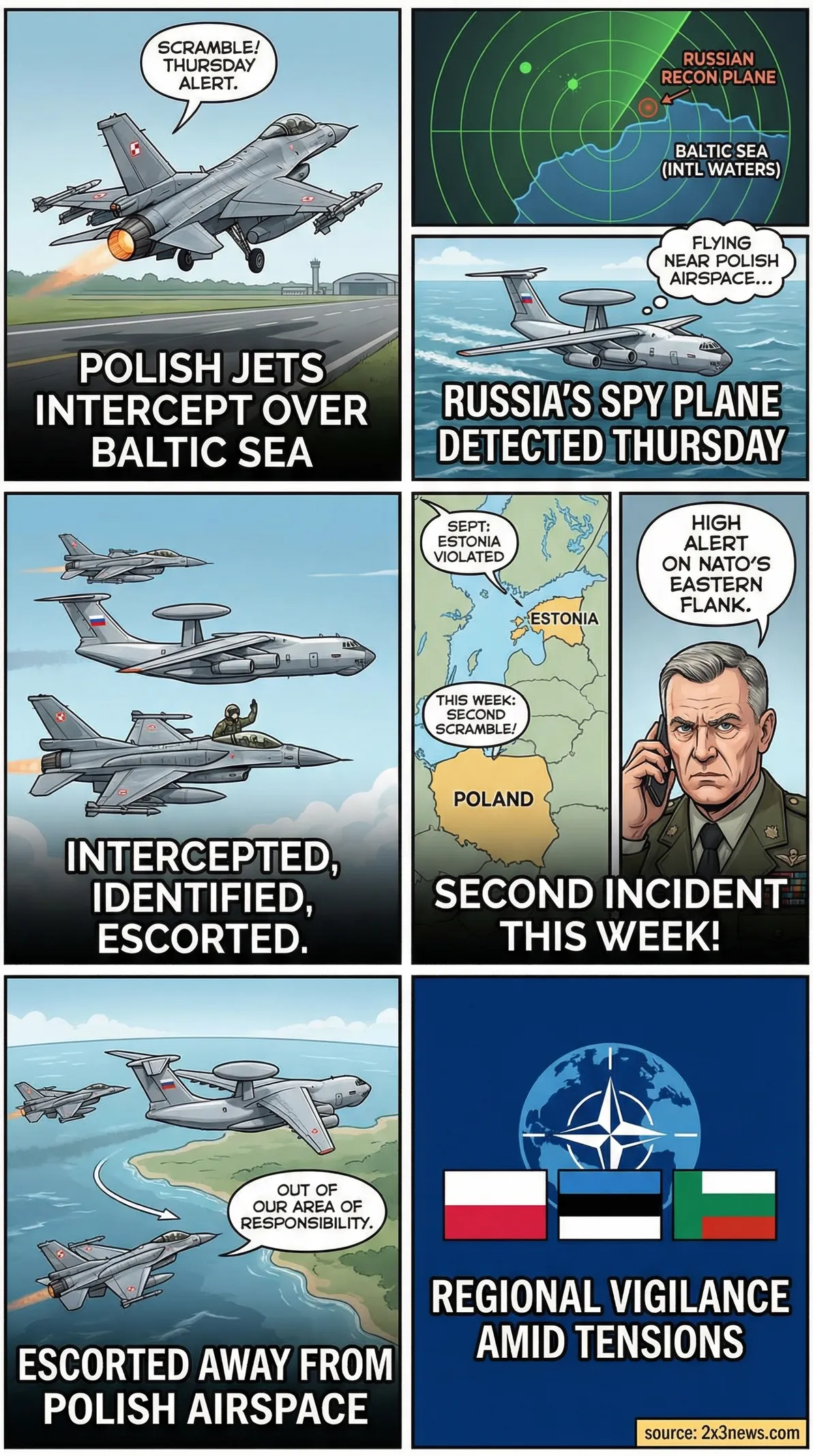 Poland's military intercepted a Russian reconnaissance plane over the Baltic Sea. The incident follows recent airspace incursions, raising NATO's eastern flank alert.