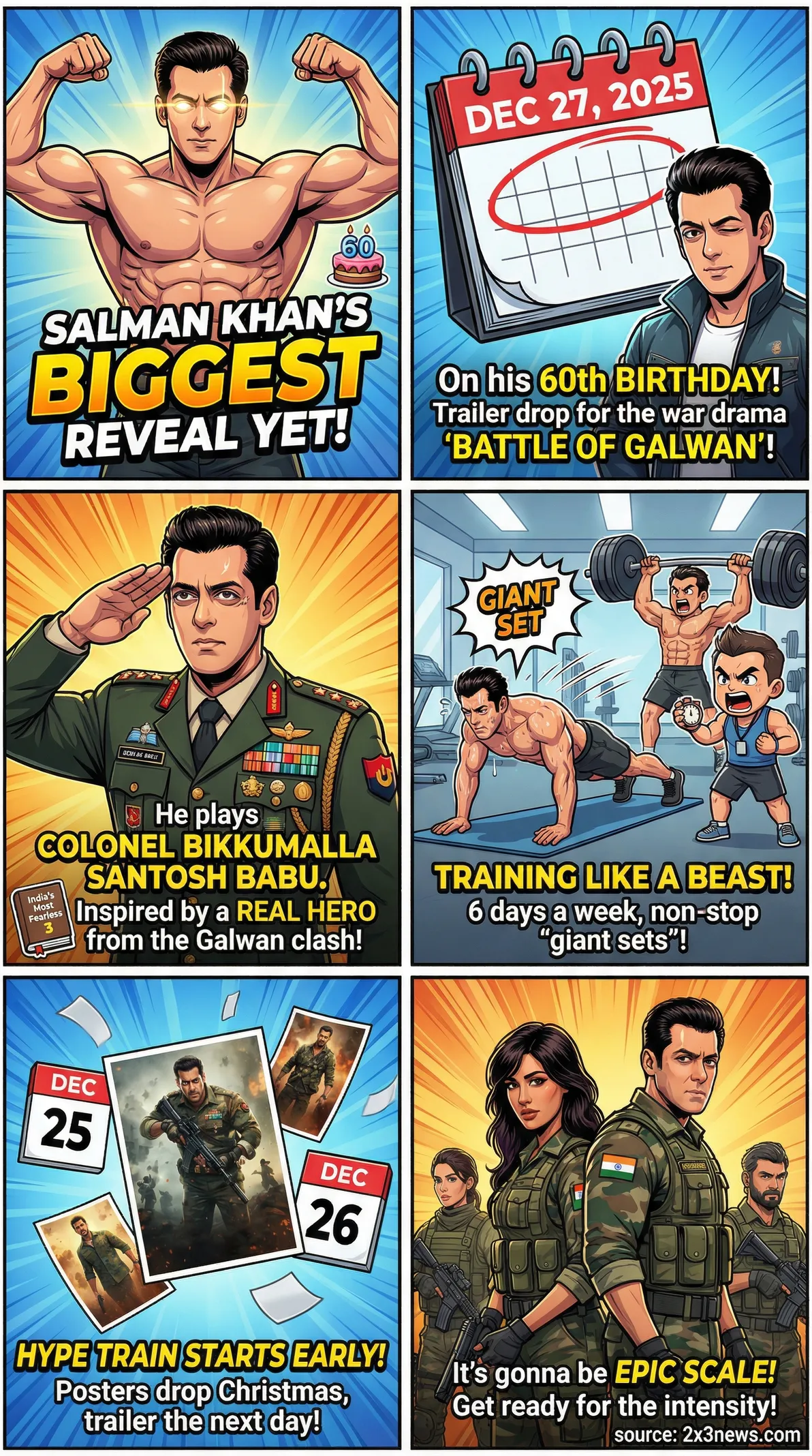 - •The trailer for Salman Khan's war drama *Battle of Galwan* is scheduled for release on December 27, 2025, coinciding with his 60th birthday.