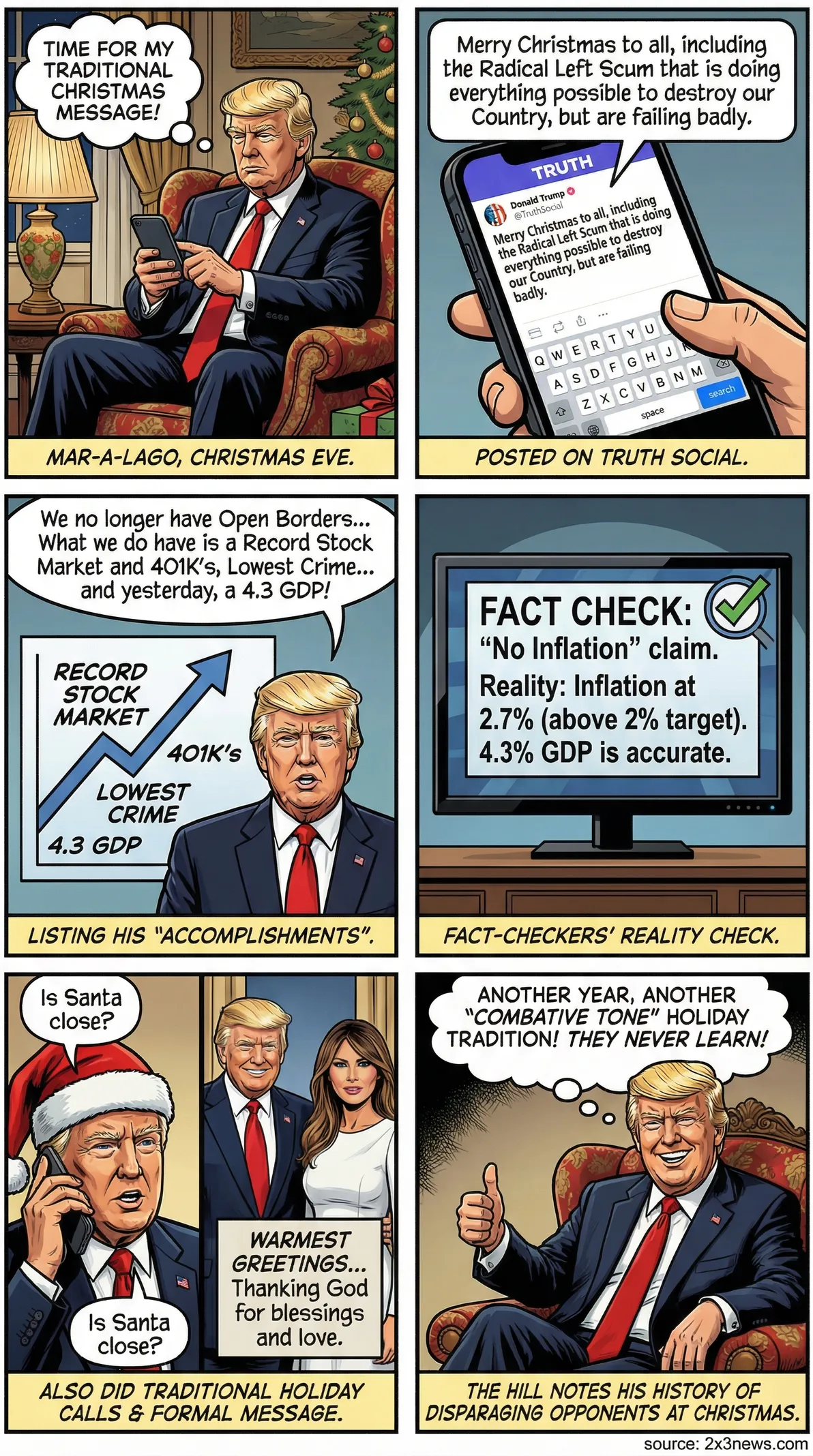 - •Alongside the political attacks, Trump also participated in traditional holiday activities like NORAD Santa tracker calls and sent greetings to U.S. troops.