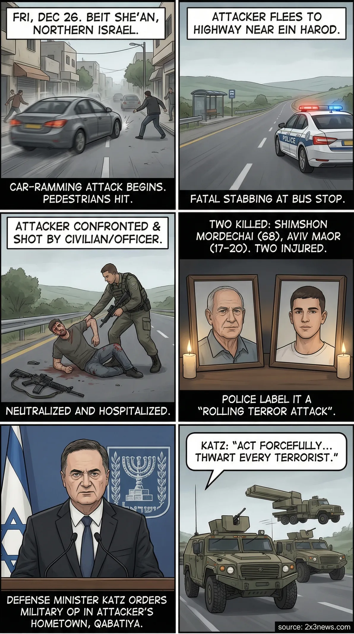 - •Israeli Defense Minister Israel Katz ordered a military operation in the attacker's hometown of Qabatiya, citing the need to target 'terrorist infrastructure.'